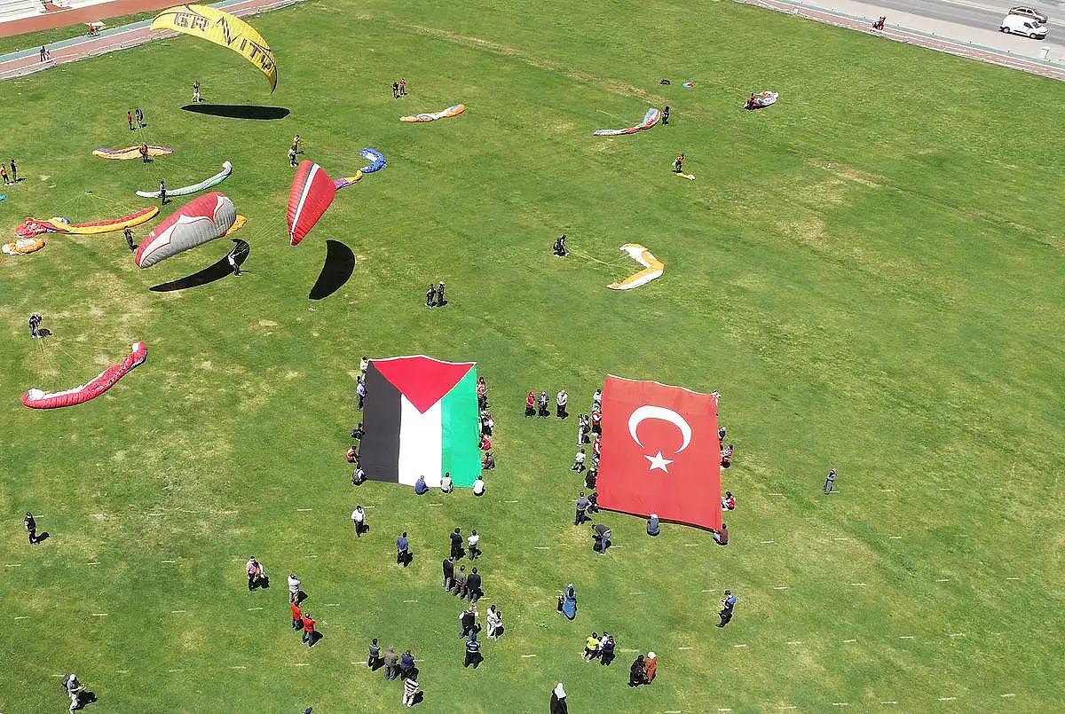 İsrail'in Kudüs ve Gazze'de gerçekleştirdiği katliama tepkiler sürüyor.Bu kapsamda Talas Belediye Başkanı Mustafa Yalçın öncülüğünde Yamaç Paraşütü İniş Alanı'nda bir program düzenlendi.