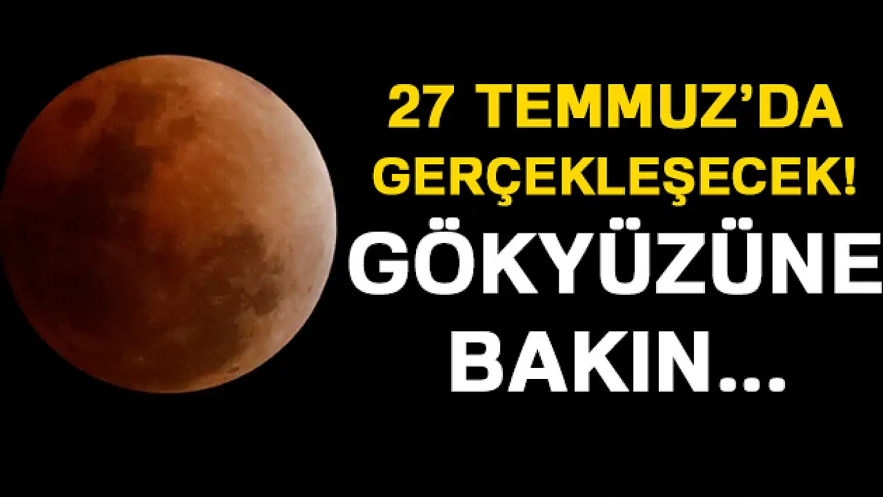27 Temmuz'da gerçekleşecek tam Ay tutulması Türkiye'nin her yerinden izlenebilecek.Aka Okulları Astronomi Hocası Erkan Arı yaptığı açıklamada, 27 Temmuz'da gerçekleşecek olan tam Ay tutulmasını Avrupa, Asya, Afrika, Avustralya kıtaları ve Amerika kıtasını