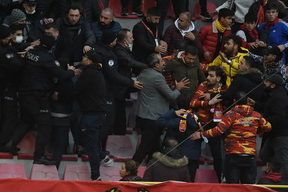 KAYSERİ, (BGC)- Süper Ligin 17'nci haftasında oynanan Kayserispor - Gazianep FK maçının devre arasında taraftarla ile maçta görevli polis arasında gergin anlar yaşandı.Araya Milliyetçi Hareket Partisi Kayseri Milletvekili Baki Ersoy ve Kayserispor yönetic