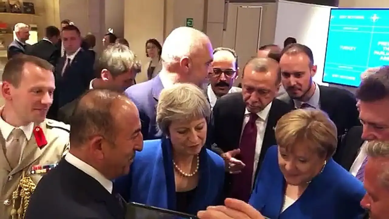 Brüksel'de gerçekleşen ve 29 liderin katıldığı NATO Zirvesi, pek çok konuda ilginç ana sahne oldu. Arnavutluk Başbakanı Rama'nın sosyal medya hesabından "Son Dakika" (Minuta e Fundit) notuyla paylaştığı videoda, Dışişleri Bakanı Mevlüt Çavuşoğlu'nun cep telefonundan maçın son dakikalarını ayaküstü Türkiye Cumhurbaşkanı Recep Tayyip Erdoğan, İngiltere Başbakanı Theresa May, Almanya Başbakanı Angela Merkel ve Arnavutluk Başbakanı Edi Rama ile izlediği görüldü. Karşılaşmanın son anlarını dikkatle takip eden liderler, bir yandan maçı yorumladı.