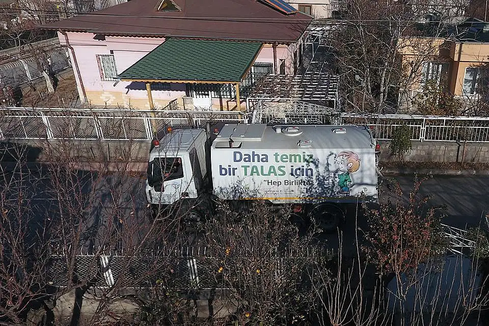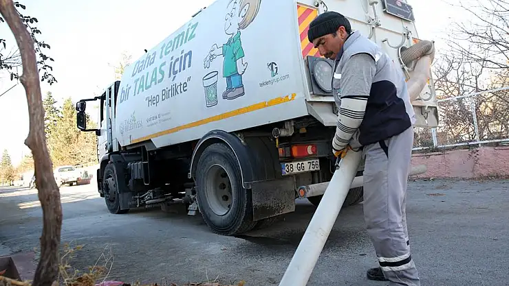 Talas’ta sonbahar mevsimi ile birlikte ağaçlarından sararıp düşen yapraklar çevre kirliliği oluşturmaması için belli saat ve zaman aralığında toplanıyor.