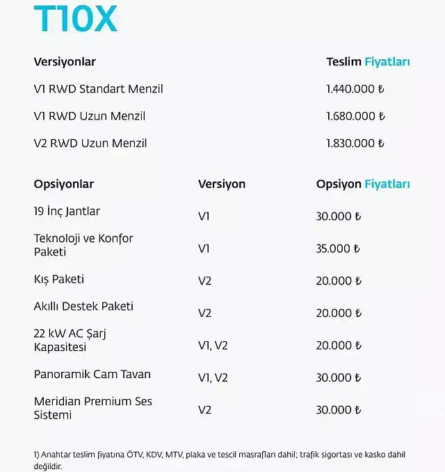 TOGG T10X FİYATLARI 2025'TE DEĞİŞMEDİ