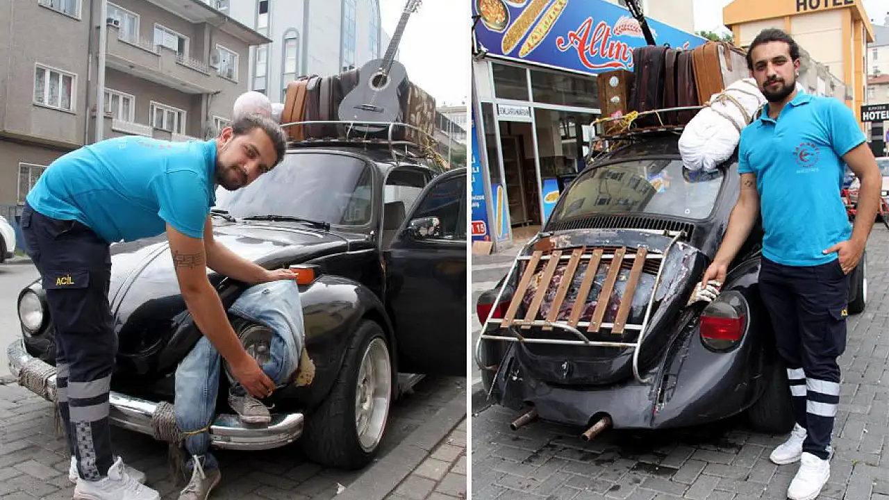 Kocasinan ilçesinde bir özel ambulans şirketinde yöneticilik yapan acil tıp teknisyeni Mücahit Kızılörs, okulunu bitirince, biriktirdiği parayla hayalini kurduğu 1974 model Wolkswagen marka otomobil satın aldı. Müzikle de uğraşan genç teknisyen, trafik kazalarına dikkat çekmek için otomobilinin tavan üstü sepetine çok sevdiği gitarını ve futbol topu ve branda ile yapılan kefenlenmiş bir ceset koydu. Kızılörs, sol ön kaputunun altına kot pantolonlu, spor ayakkabılı bir mankenin bacaklarını, arka kaputun altına ise bir manken eli yerleştirdi.