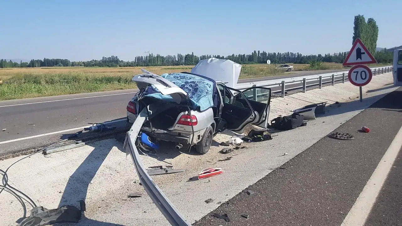Ardından refüjde bulunan demir bariyerlere saplanan 59 yaşındaki Cebenoyan ve eşi, kazayı gören diğer sürücülerin ihbarı üzerine olay yerine giden itfaiye tarafından araçtan çıkartıldı.