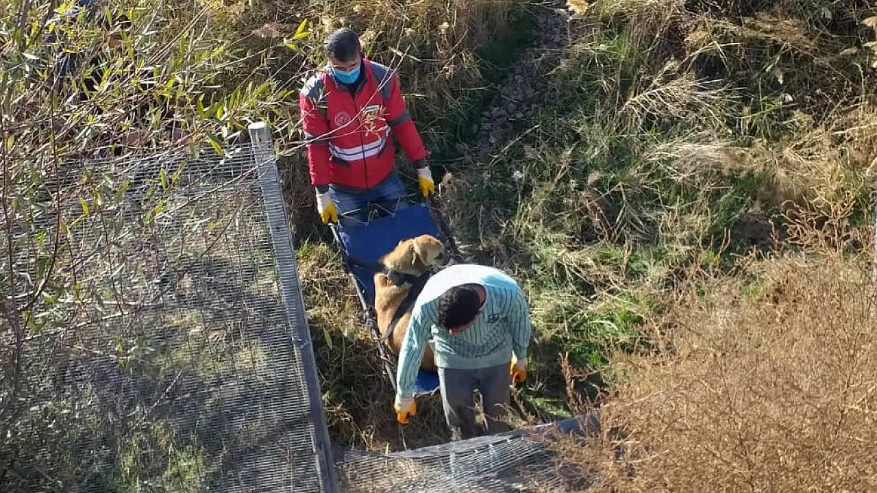 TRENİN ÇARPTIĞI KÖPEĞE, KÜÇÜK DOSTLAR AMBULANSI ANINDA MÜDAHALE ETTİ