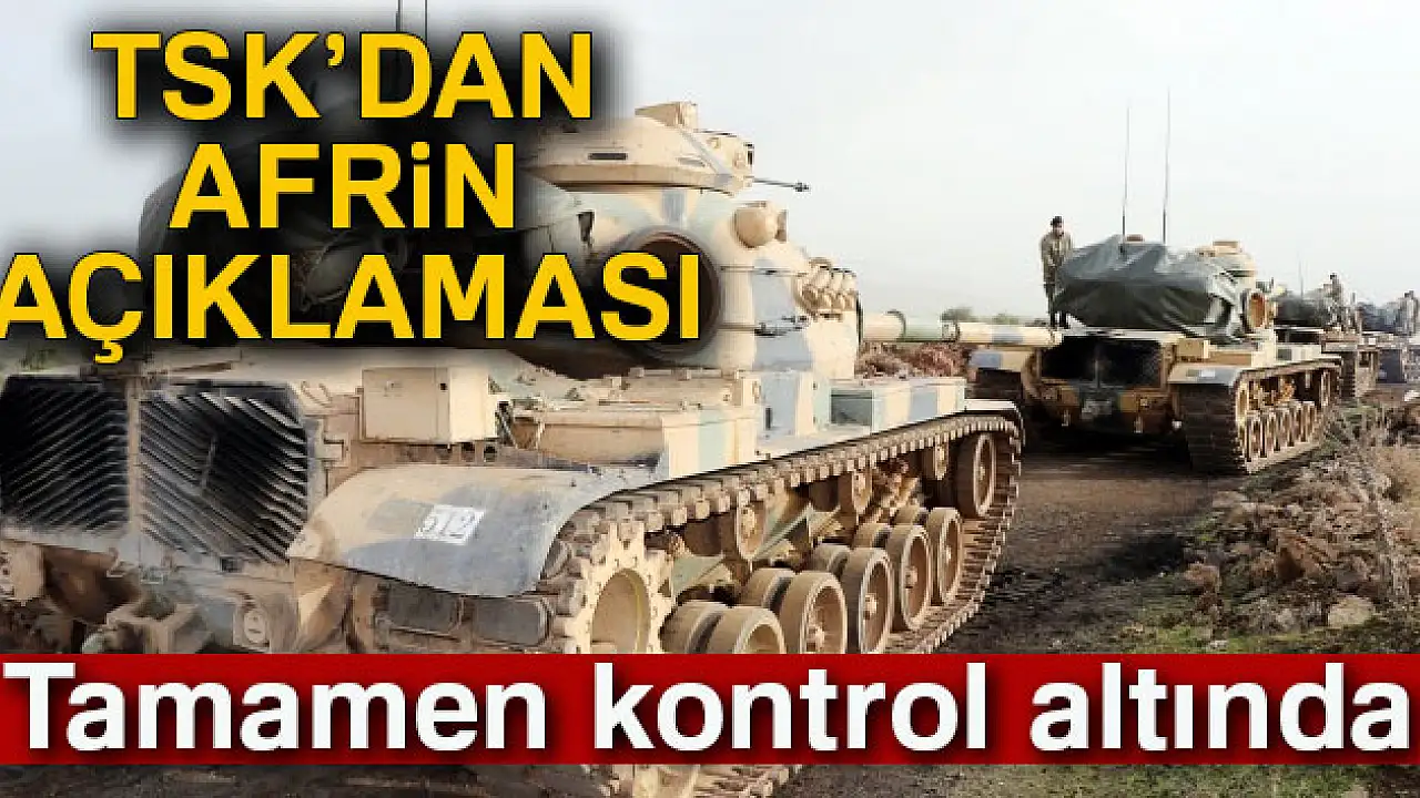 Türk Silahlı Kuvvetleri, Afrin bölgesinin tamamen kontrol altında olduğunu açıkladı.