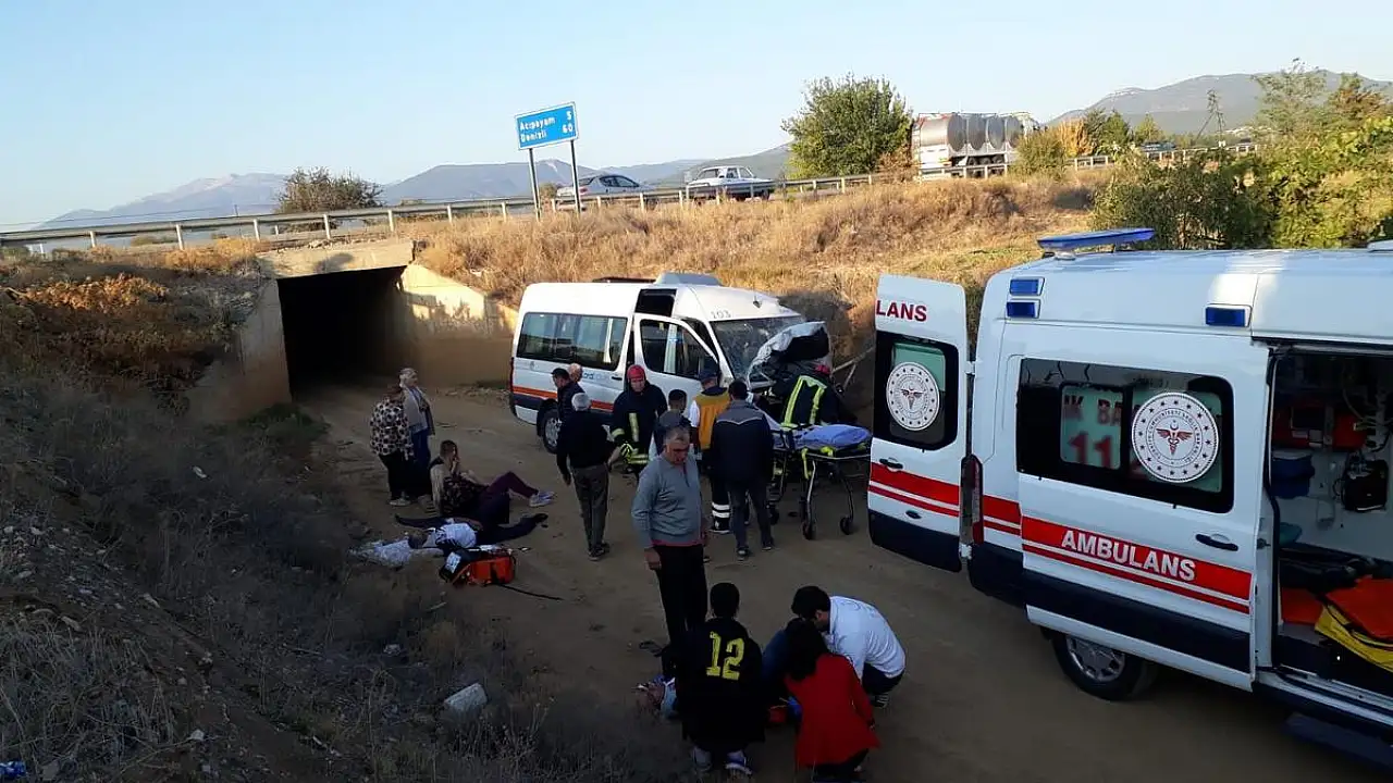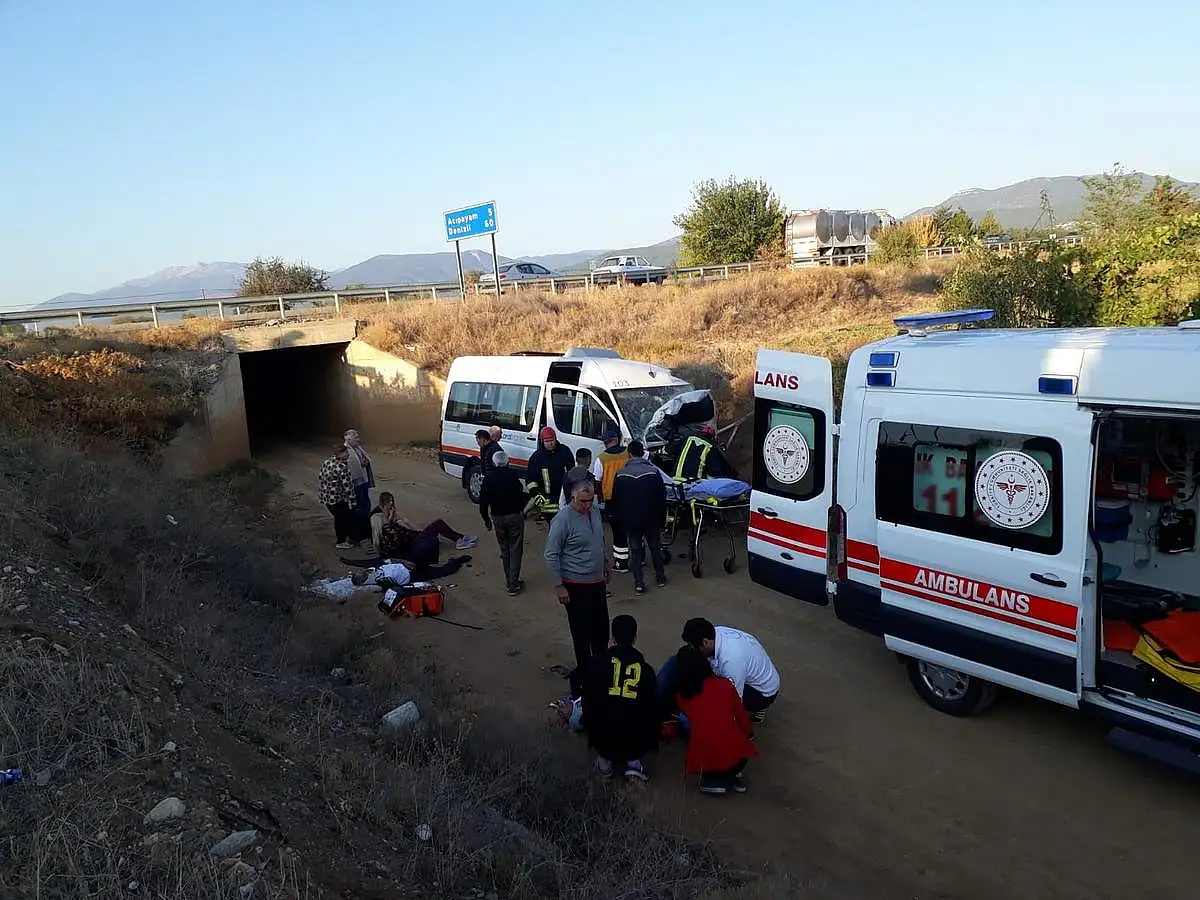 Denizli’de turistleri taşıyan minibüs ile traktörün çarpışması sonucu meydana gelen trafik kazasında 10’u yabancı uyruklu olmak üzere 12 kişi yaralandı.