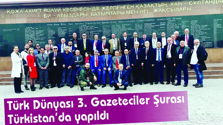 Türkiye Gazeteciler Cemiyetleri Basın Vakfı'nın düzenlediği, 'Türk Dünyası 3.Gazeteciler Şurası', bu yıl Türk Dünyası Kültür Başkenti unvanını taşıyan Kazakistan'ın Türkistan şehrinde gerçekleştirildi.