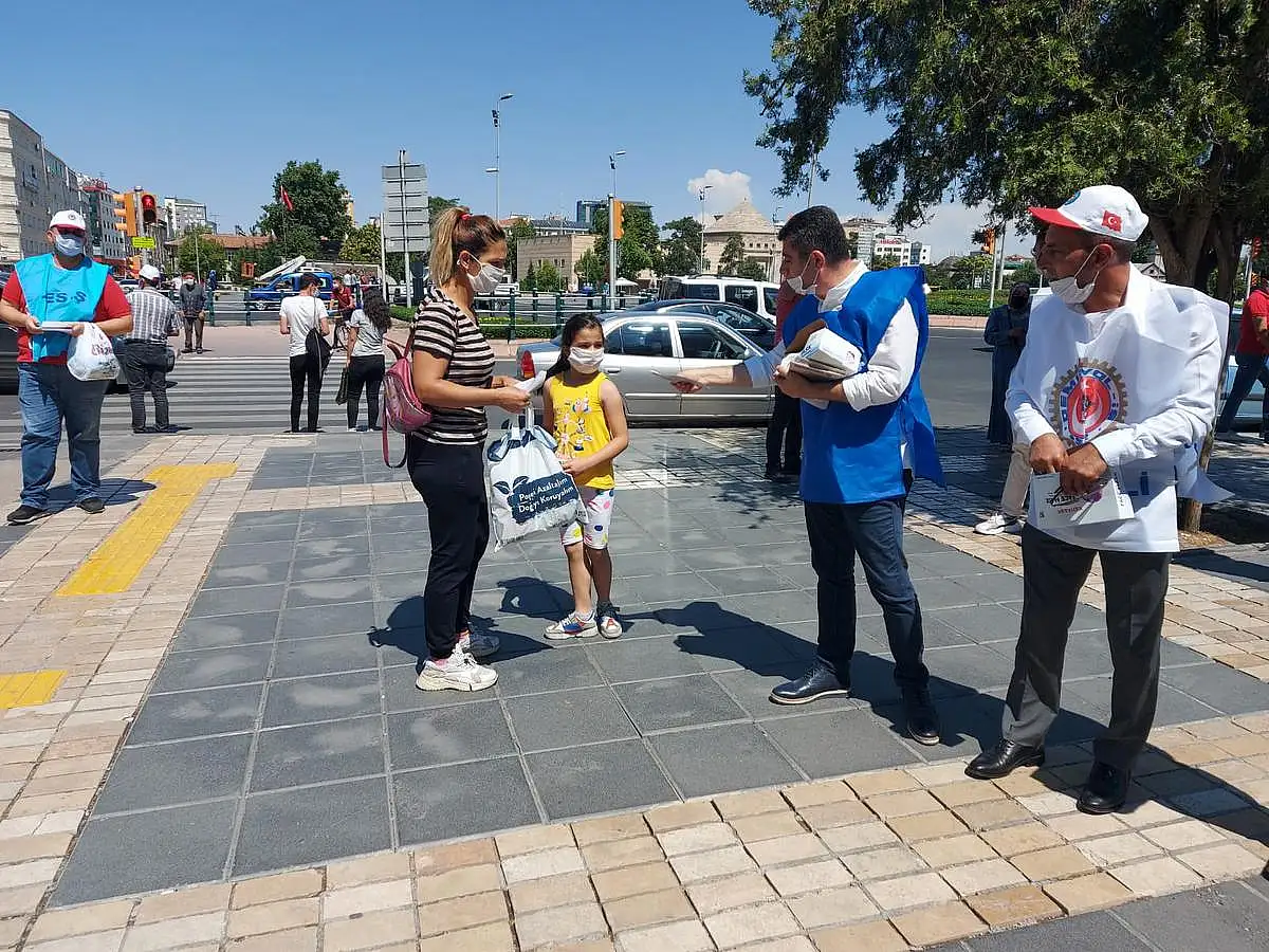Düzenlenen basın açıklaması sonrası pandemi sürecinde kullanılması zorunluluk haline getirilen maskelerden de vatandaşlara dağıttılar.