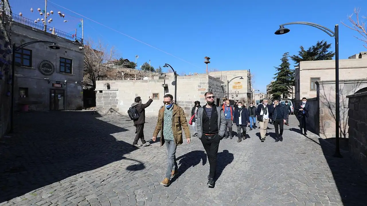 Ukrayna, Bulgaristan, Sırbistan, Bosna Hersek, Karadağ, Hırvatistan ve İran gibi ülkelerden gelen heyet, Talas’ın tarihi mekanlarını ziyaret etti. Tarihi Ali Saip Paşa Sokağı’nın yanı sıra Talas Sanat Galerisi ve Yaman Dede Konağı’nı ziyaret eden heyete, gezdikleri yerler hakkında ayrıntılı bilgiler verildi.