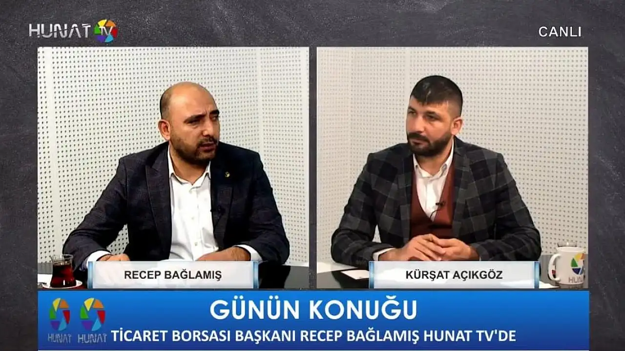 Kayseri Ticaret Borsası Yönetim Kurulu Başkanı Recep Bağlamış, Hunat TV Genel Yayın Yönetmeni Kürşat Açıkgöz’ün hazırlayıp sunduğu ‘Günün Konuğu’ programına konuştu. Başkan Bağlamış, göreve geldikten sonra Kayseri ve üyeleri için yaptıkları projeleri ve planlanan çalışmaları anlattı.