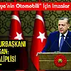 Dünyada genel olarak gelişme ve kalkınmada, özellikle de otomotiv piyasasında belirli sıçrama dönemleri olduğunu belirten Erdoğan, "2. Dünya Savaşı’na kadar olan dönemi otomotiv sektörünün başlangıç yılları olarak ifade etmek mümkündür. 1945’den 1980’lere kadar olan dönem, Amerika ve Avrupa merkezli olarak sektörün sıçrama dönemidir. 1980’den günümüze kadar geçen süreçte bir yandan sektör küreselleşirken bir yandan da Güney Kore, Çin, Hindistan gibi yeni aktörler devreye girmiştir. Son yıllarda hibrit otomobiller, elektrikli otomobiller, sürücüsüz araçlar gibi gelişmelerle sektörün yeni bir döneme girişine hep birlikte şahit oluyoruz. Türkiye olarak otomotiv sektörünün ilk üç dönemini kaçırdık. Esasen ikinci dönemini yakalama şansımız belki olabilirdi. Ülkemizin içinde bulunduğu şartlar; terör olayları, darbeler, siyasi istikrarsızlık ve toplumsal huzursuzluklar gibi faktörler buna imkan vermedi. Aynı hatayı bir kez daha yapmayacak, sektörün dördüncü dönemini ıskalamayacağız. Bugün burada atılacak imzalar işte bu dönüşümü yakalama kararlılığımızın nişanesi olacaktır. Üretilecek otomobilin de bugünün değil, geleceğin ihtiyaçlarına uygun olacağından şüphe duymuyoruz. Bu otomobilin öncü ve taşıyıcı gücü elbette Ortak Girişim Grubu olacaktır. Bu otomobil tüm Türkiye’nin birikimi katkısı, desteği ile ortaya çıkacak. Ortaya doğru dürüst bir ürün konulduğunda milletimiz tercihini bu araçtan yana kullanacaktır. Bu ürünün çevremizden başlayarak dünyaya pazarlanması konusunda da her türlü desteği vereceğimizden emin olunuz. Dünya pazarlarında söz sahibi tüm markaların ortaya çıkışlarında ve bugünlere gelişmelerde devlet desteği aldıklarını çok iyi biliyoruz. Bizim de kendi markamız için bu şekilde hareket etmemizden daha tabi bir şey olamaz. Türkiye’nin dünyanın en büyük 10 ekonomisinden birisi haline gelmesi bu tür girişimlerle mümkündür. Türkiye’nin otomobilinin; sınıfına, tasarımına, motor teknolojisine, modeline, üretim yöntemine, pazar hedefine elbette girişim grubumuz karar verecektir. TÜBİTAK bünyesinde üzerinde çalışmalar yapılan platform girişim grubumuzun emrine amadedir. Bunun yerine doğrudan hibrit ve elektrikli otomobile yönelmek isterlerse daha da memnun oluruz. Kararları ne olursa olsun biz kendilerine her türlü desteği vereceğiz. Yeter ki Türkiye’yi ve Türk milletini bu büyük hayali ile buluştursunlar" ifadelerini kaydetti.