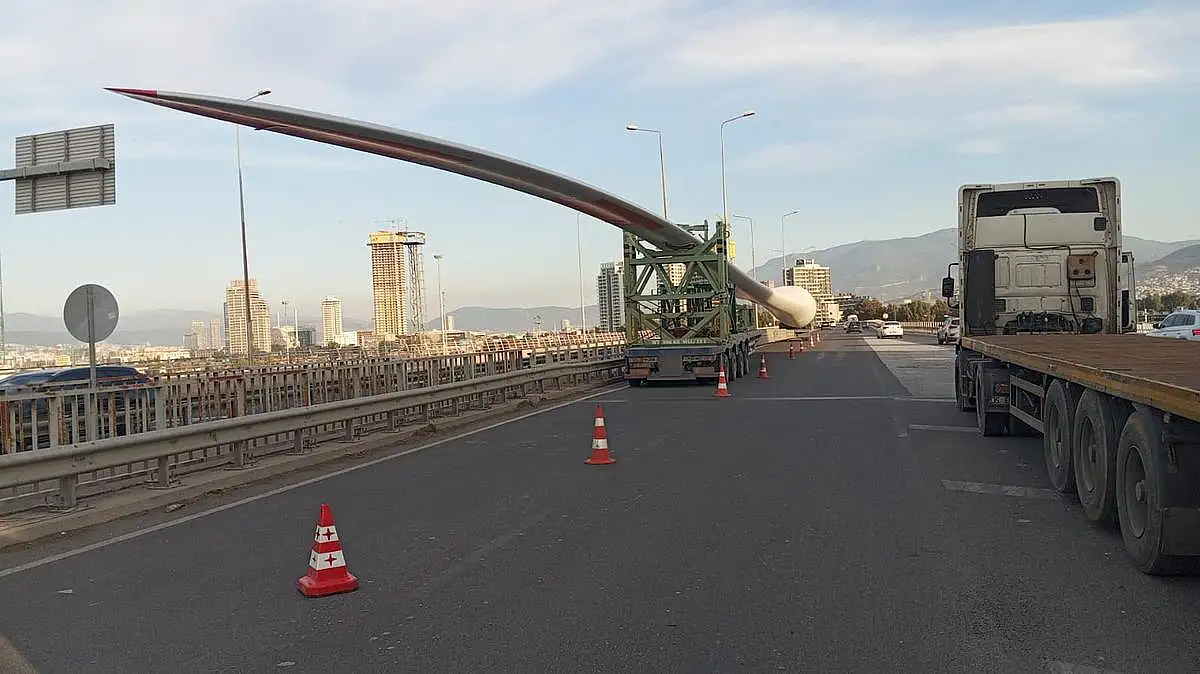 Kayseri Büyükşehir Belediyesi Ulaşım A.Ş.’nin Türkiye’nin toplu ulaşım sektöründeki ilk rüzgâr enerji santrali (RES) projesinde çalışmalar hızla ilerliyor. Türbinlere ait kanatlar, İzmir Alsancak Limanı’ndan Kayseri’ye doğru yola çıktı.