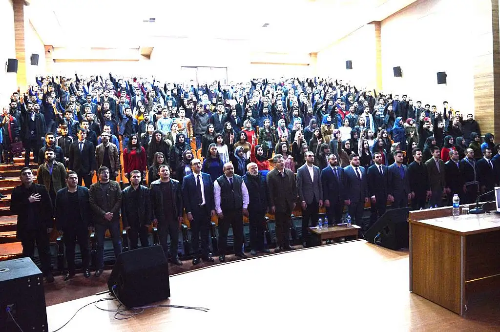 Erciyes Üniversitesi İletişim Fakültesi Süleyman Çetinsaya Konferans Salonu’nda gerçekleşen programa Ülkü Ocakları İl Başkanı Volkan Çolak, öğretim üyeleri ve çok sayıda öğrenci katıldı. Programda bir konuşma yapan İl Başkanı Volkan Çolak, “ Hepinizin bildiği gibi Anadolu ana yurdumuz, Türkistan ise ata yurdumuzdur. Şunu iyi bilmeliyiz ki, Anadolu bizleri ne kadar ilgilendiriyorsa, Türkistan’daki gelişmelerde aynı derecede dikkatimizi çekmelidir.Zira Ötüken ormanlarında; Mete’nin, Kür Şad’ın başlattığı rüzgâr, Anadolu yaylasında kasırga halini almış, yedi düveli titretmiştir.Türkistan Davası, Avrasya’dan Türk adının silinme çabalarını engelleme davasıdır.Tarihin bu döneminde de görülmektedir ki Türkistan; Rusya, Çin ve İran temelli olduğunu gördüğümüz emperyalist ve komünist politikalar ekseninde zulüm ve baskı altında yaşam mücadelesi vermektedir.” dedi.