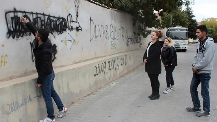Kırşehir Ahi Evran Üniversitesi Eğitim Fakültesinin duvarındaki 'Torbacı 100 metre ileride' yazısını gören öğrenciler, duvardaki yazıya olan tepkilerini yazıyı sprey boyayla silerek gösterirken, "Damarlarındaki Asil Kanı Kirletme" sloganı çerçevesinde yürütülen uyuşturucu ile mücadelelerinin devam edeceğini belirttiler.