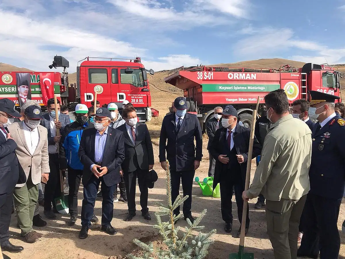 Kayseri’de ağaçlık alanların toplam alanın yüzde 10’u olduğunu söyleyen Vali Günaydın, “Cumhuriyetimizin kuruluşunun 23. Yıl dönümünü kutluyorum. Başta Gazi Mustafa Kemal Atatürk olmak üzere, ebediyete intikal eden bütün şehitlerimizi, kahraman gazilerimizi rahmetle minnetle yad ediyorum. Bugün aynı zaman da Mevlid Kandili bütün vatandaşlarımızın, milletimizin, İslam aleminin Mevlid Kandilini tebrik ediyorum. Bugün aynı zamanda, Erciyes’te ağaç dikiyoruz. İnşallah bundan sonra her yıl 28 Ekim’de orman teşkilatımız ile burayı ağaçlandırmaya çalışalım, buradaki orman varlığımızı arttıralım. Burada yol kenarı ağaçlandırma projesi yürütüyoruz ve bu kapsamda da 132 bin tane fidan dikeceğiz. Bunların da birçoğu görmüş olduğunuz boylu fidanlar. Şimdiye kadar Erciyes’te ciddi sayıda fidan dikildi. Yaklaşık 4 milyon 600 bin civarında buraya fidan diktik. İnşallah 2020 yılı içerisinde bu 132 binin üzerini tamamlayarak 400 - 450 bine çıkaracağız, arttırabildiğimiz kadar arttıracağız ve inşallah 2020 yılı sonu itibari ile Erciyes Dağı’nda dikmiş olduğumuz ağaç sayısını 5 milyonun üzerine çıkaracağız. Bunu yeterli görmüyoruz çünkü Kayserimizde orman varlığı, toplam alanın yüzde 10’u civarında. Ülke ortalamasında gerilerde olduğumuzu görüyoruz. Biz bunu süratle kapatmak istiyoruz ve bunun için orman teşkilatımız çalışıyor. 11 Kasım’da da törenimiz var. O zaman da ağaçlandırma için burada olacağız. Tüm fırsatları değerlendireceğiz. Kayserimizdeki orman varlığını da Türkiye ortalamasına yaklaştırıp, daha sonra da üzerine çıkartmaya çalışacağız. Tekrar Cumhuriyet Bayramımızı ve Mevlid Kandilimizi tebrik ediyorum” dedi.