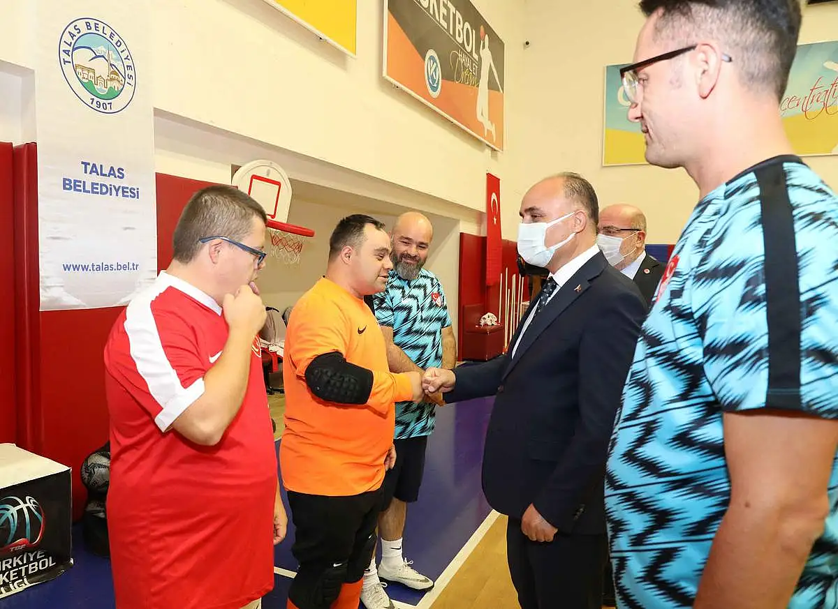 Kayseri Valisi Şehmus Günaydın, Kayseri Üniversitesi Rektörü Prof. Dr. Kurtuluş Karamustafa ile birlikte Down Sendromlular Futsal Milli Takımı’nın Kayseri Üniversitesi Kapalı Spor Salonu’ndaki antrenmanını izledi.