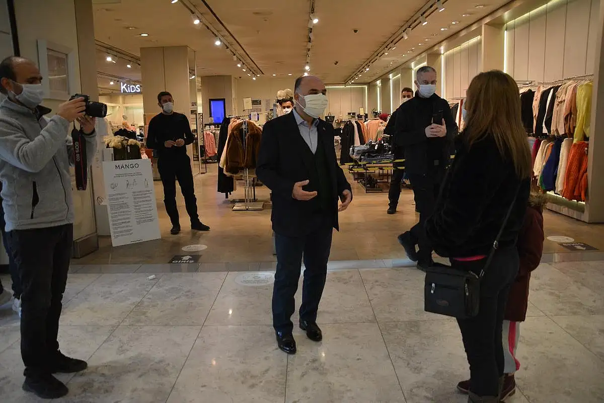 Kayseri Valisi Şehmus Günaydın, hafta sonu alışveriş merkezinde, koronavirüs tedbirleri kapsamında, maske ve sosyal mesafe denetimi yaptı.