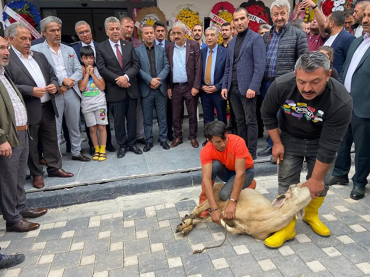 Kuran tilaveti ve kurban kesiminin ardından MHP İl Başkanı Adnan İncetoprak tarafından salonun açılış kurdelesi kesildi.