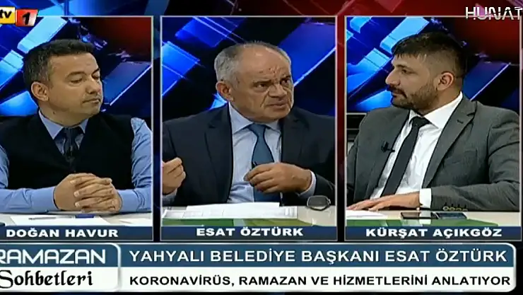 Yahyalı Belediye Başkanı Esat Öztürk, TV1 ve Hunat TV ortak yayınında TV1 Genel Yayın Yönetmeni Doğan Havur ve Hunat TV Genel Yayın Yönetmeni Kürşat Açıkgöz'ün hazırlayıp sunduğu Ramazan Sohbetleri Programına konuk oldu.Öztürk, korona virüs tedbirlerini v