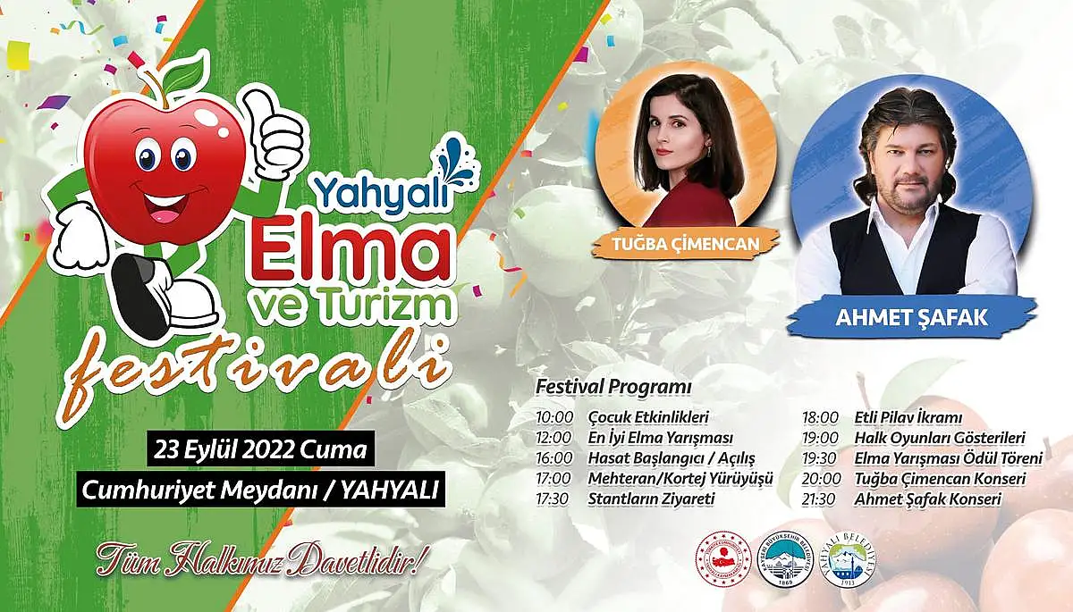 Bu yıl ilki düzenlenecek Yahyalı Elma ve Turizm Festivali’ne Hunat TV aracılığıyla Kayseri ve çevre illeri de davet eden Yahyalı Belediye Başkanı Esat Öztürk; “Hunat TV aracılığıyla çevre il ve ilçelerde elma severleri, Yahyalı severleri Yahyalı Elma ve Turizm Festivali’ne davet ediyorum. Özellikle söylüyorum ‘İlçelerin Sultanı, Doğanın Sultanı ve Yeryüzünün Cenneti’ diye adlandırdığımız bu ilçede özellikle de turizmi ilave etmiş olduk. Bu ilçeye hem elma yakışıyor hem de turizm yakışıyor. İki özelliğimizde ön planda. Allah nasip ederse 23 Eylül’de yapacağımız festivale tüm hemşehrilerimizi davet ediyorum. Tüm ilçelerde hemen hemen tüm eserlerini dinlediğim Ahmet Şafak beyefendi gençlerimizin de sevdiği bir sanatçı. Keza Tuğba Hanım zaten Yahyalımızın evladı. Tüm sanatseverleri festivalimize davet edeceğiz ve elleri de boş dönmeyecek” dedi.
