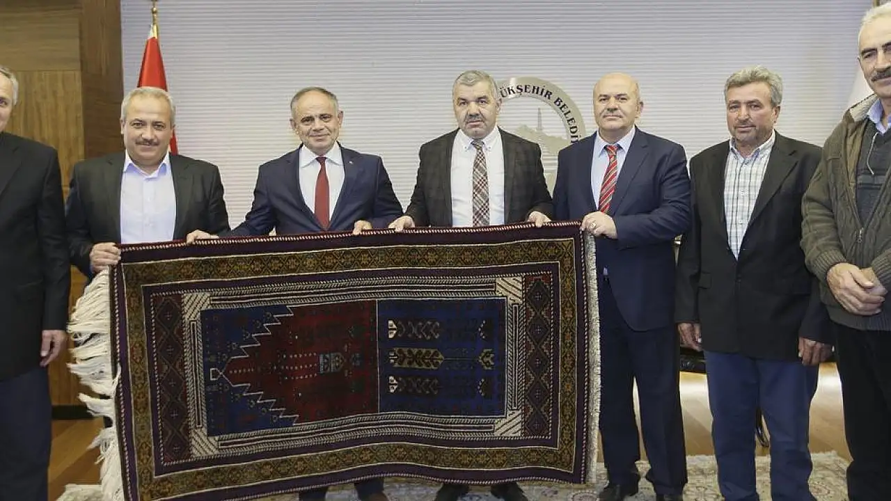 Yahyalı Belediye Başkanı Esat Öztürk ve Sulama Birliği yöneticileri ziyarette Başkan Mustafa Çelik'e Yahyalı Halısı ve Yahyalı Elması hediye ettiler.
