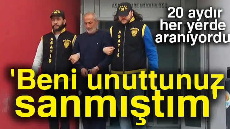 Adana'da cinayete karıştığı ileri sürülerek yakalanan ve tutukluluk süresi bittiğinden serbest kalan hükümlünün, 21 yıl hapis cezası aldıktan sonra polis tarafından yakalanınca, "Beni unuttunuz sanmıştım" diye tepki gösterdiği öğrenildi.