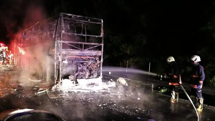 Mersin'de 44 yolculu şehirler arası otobüs, henüz bilinmeyen bir nedenden dolayı seyir halindeyken alev aldı.Şoförün yangını erkenden fark etmesi yolcuların hayatını kurtardı.