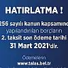 7256 sayılı kanun kapsamında yapılandırılan borçların 2. taksit son ödeme tarihi 31 Mart 2021’de sona eriyor.