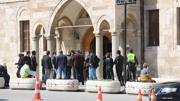 Seyahat izin belgesi almak için Sivas Valiliği önünde bekleyen kalabalığın yardım kuyruğunda olduğunu düşünen vatandaşlar, kuyruğa dahil olunca kuyruk uzadı.