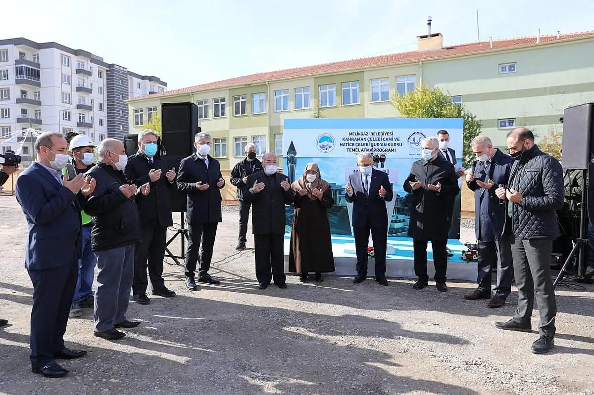 Melikgazi Belediyesi Mimarsinan Şirintepe Mahallesi’nde mülkiyeti Belediyeye ait arsa üzerine Hayırsever Kahraman Çelebi ile yapacağı Kahraman Çelebi Cami ve Hatice Çelebi Kur’an Kursu’nun temelini attı.