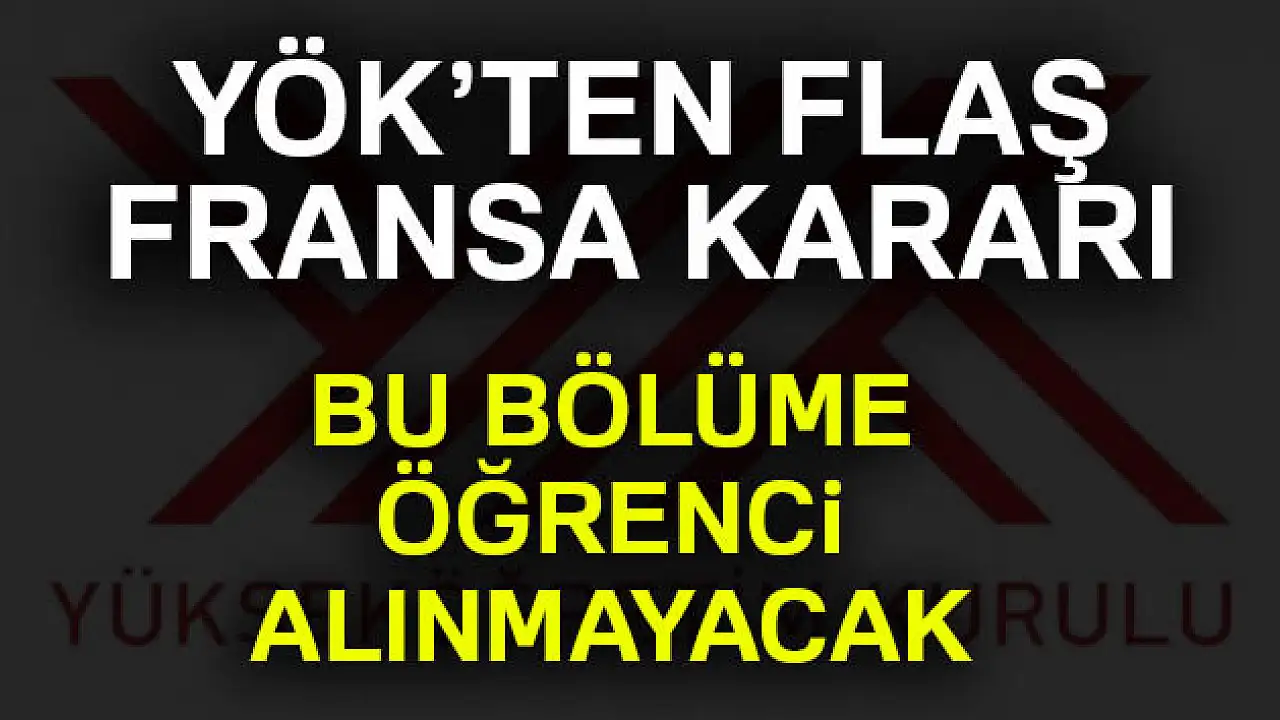 Yükseköğretim Kurulu Başkanlığı (YÖK), Türkiye'deki yükseköğretim kurumları bünyesinde yer alan ve henüz öğrencisi olmayan Fransız dili ve edebiyatı ve Fransızca öğretmenliği bölümlerine yeni bir karar alınıncaya kadar öğrenci alınmamasına karar verdi.YÖK