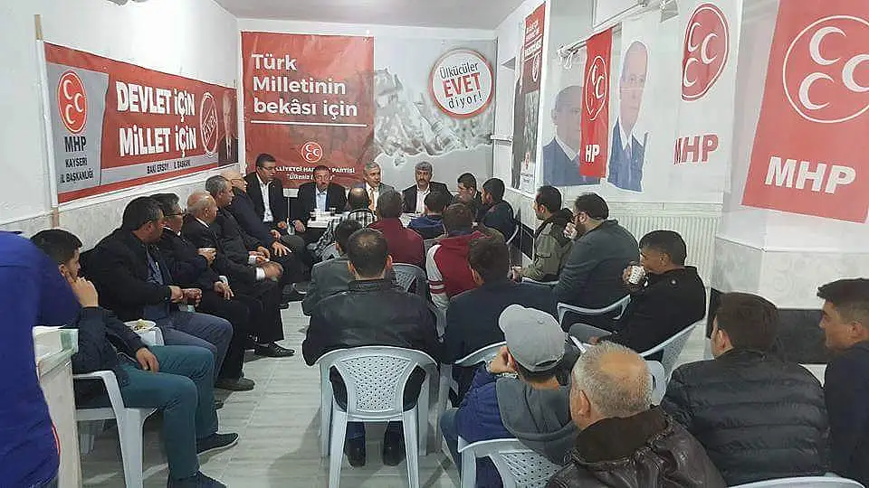 MHP Melikgazi İlçe Teşkilatı, bölge istişare toplantılarını gerçekleştirmeye devam ediyor.Toplantılarda partililerle ve vatandaşlarla bir araya gelen MHP Melikgazi İlçe Teşkilatı Başkanı Ertuğrul Yücebaş,' İçinde bulunduğumuz süreç 16 Nisan'da Türk Millet