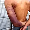 Yunan askerleri tarafından tüfekle dövüldüğü iddia edilen göçmenler, zorla Türkiye'ye gönderildi.Kolları ve omuzları moraran göçmenler Türkiye'de tedaviye alındı.