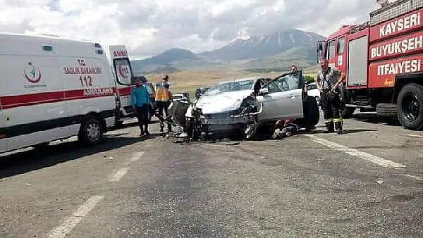 Kaza, dün saat 14.00 sıralarında, Develi ilçesi çevre yolu Çomaklı kavşağında meydana geldi. Murat Güney (39) yönetimindeki 06 GLF 93 plakalı otomobil, Bayram Altan'ın (39) kullandığı 79 DV 445 plakalı otomobil ve Göksel Yıldız (38) yönetimindeki 44 KV 706 plakalı otomobil çarpıştı. Araçlardan 2'sinin tarlaya savrulduğu kazada, 3 sürücü ile otomobillerde bulunan Arzu Batı (35), Rabia Batı (45), Saniye Sert (37), Tuğba Güney (30), Seval Altan (33), Aziz Taner (58) ve Atıf Karaduman yaralandı. İhbarla gelen sağlık görevlileri, 10 yaralıyı ambulanslarla hastaneye götürdü. Kazada ağır yaralanan Aziz Taner, tüm müdahalelere rağmen kurtarılamadı. Erciyes Üniversitesi Tıp Fakültesi Gevher Nesibe Hastanesi'nde tedaviye alınan Atıf Karaduman da bugün sabah saatlerinde, doktorların tüm müdahalelerine rağmen yaşamını yitirdi. Tedaviye alınan 8 yaralıdan 2'sinin sağlık durumunun kritik olduğu belirtildi.